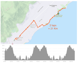 Two laps of 10,5 Km along the coastal road of Cala d’Ostia.